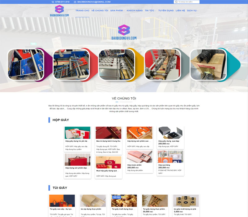 Giao diện thiết kế website bao bì Đông vũ